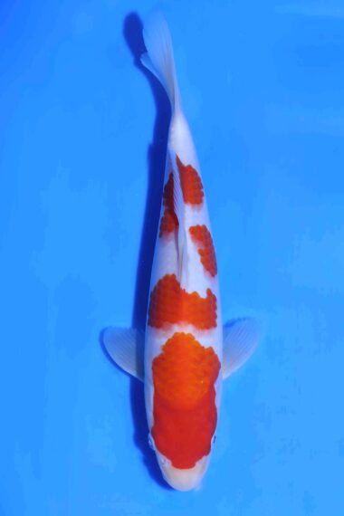 Omschrijving: Breed gebouwde kohaku met zeer mooi krachtig breed hoofd! Daarbij heeft deze 4 stapper mooi dik beni op een sneeuwitte huid met mooi maruzome kiwa en gelijkmatig sashi. En doordat het patroon mooi rond wegloopt zal het rode patroon sierlijker worden naarmate deze kohaku breder wordt! Naast een brede bouw heeft deze kohaku ook een goede tot zeer goede bouw voor de lengtegroei.